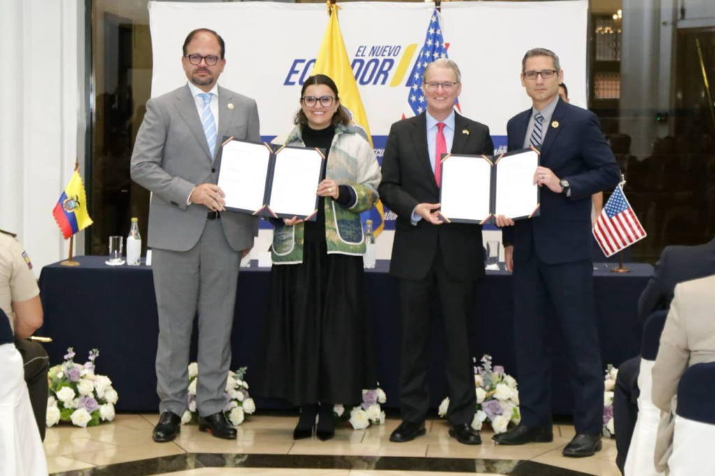 Ecuador y Estados Unidos firmaron un acuerdo que permitirá la permanencia de una oficina del FBI en Quito, desde donde un agente especial trabajará en coordinación con la Policía Nacional del Ecuador para identificar y capturar organizaciones criminales transnacionales que operan dentro y fuera del país.